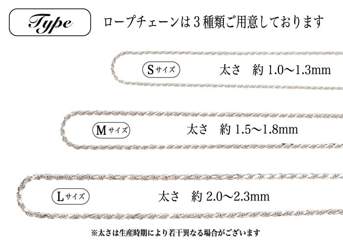 2mmはかなり太めのチェーンです。実際には2.4mmくらいあります体のがっしりとした男性に人気の太さです。