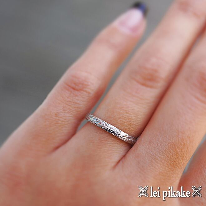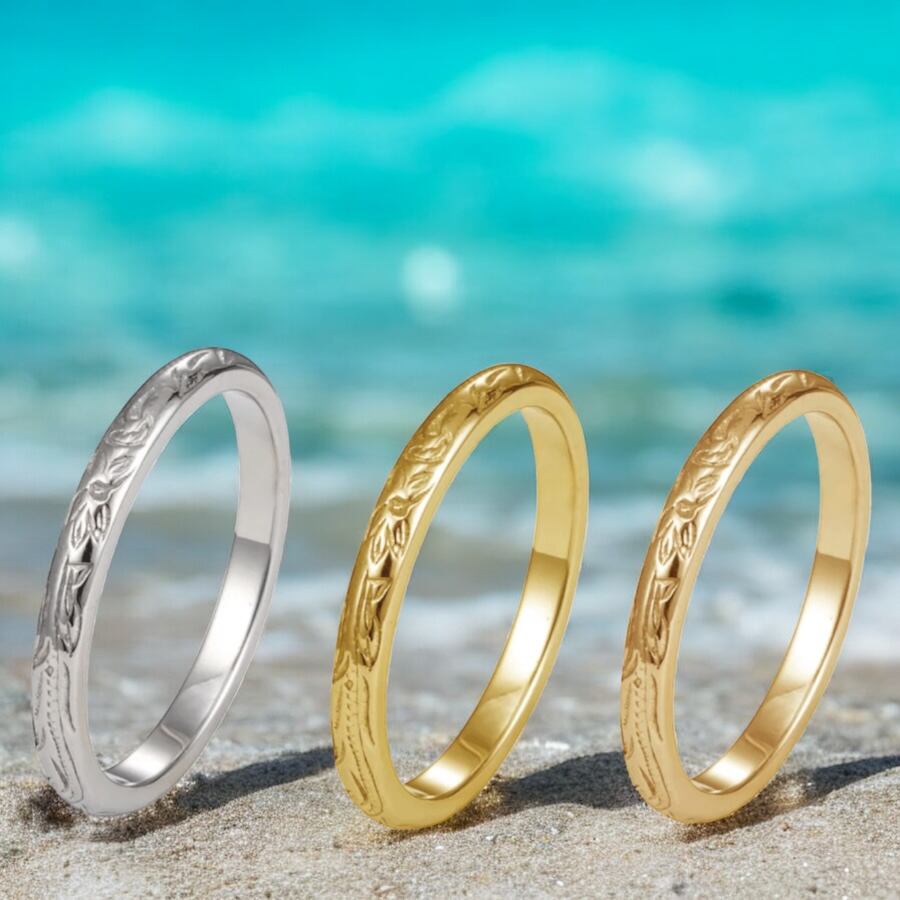 細身 ハワイアンジュエリー サージカルステンレス リング スクロール柄 リング ステンレス メンズ レディース シンプルリング フラット プルメリア メッキ 316L lei-grss502