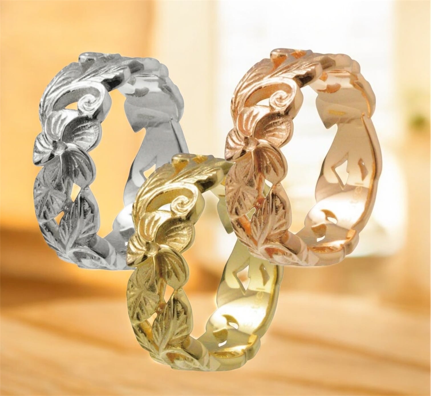 《選べる3色》透かしリング サージカルステンレス ハワイアンジュエリー リング 指輪 ステンレス メンズ レディース 透かし スクロール カットアウトリング プルメリア 指輪 プレゼント ギフト 誕生日 友達 彼氏 彼女 かわいい lei-grss620