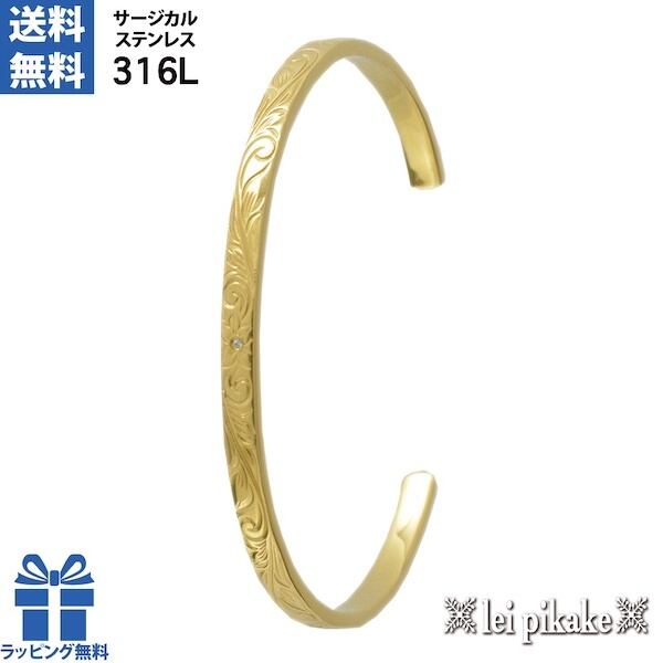 《選べる4色》《選べる2サイズ》ハワイアンジュエリー オープンバングル ステンレス プリンセス柄 4ミリ幅 CZ付き レディース メンズ コーティング ラッピング プレゼント 女性向け 男性向け 女性サイズ 男性サイズ lei-gbsg45