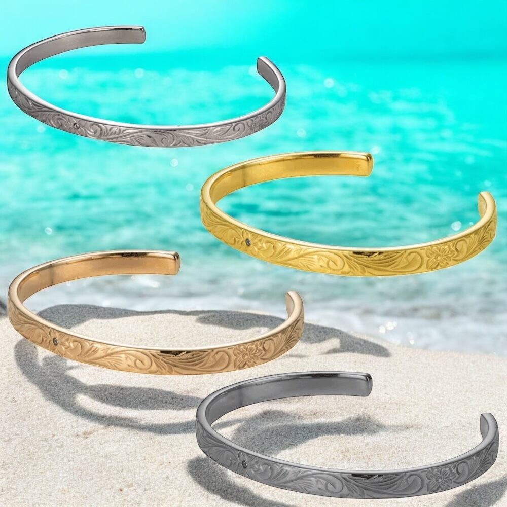 金属アレルギーに強いステンレス素材のハワイアンジュエリーバングル。