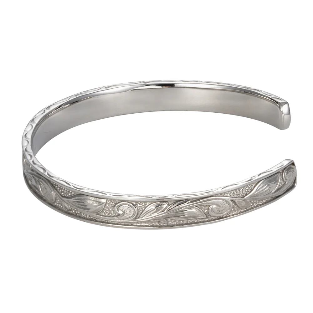 《選べる選べる3色》女性向けサイズ ハワイアンジュエリー ステンレス バングル レイズドバングル 浮き彫り サージカルステンレス ブレスレット スクロール ノーエッジ フリーサイズ プレゼント ラッピング レディース lei-gbsg68