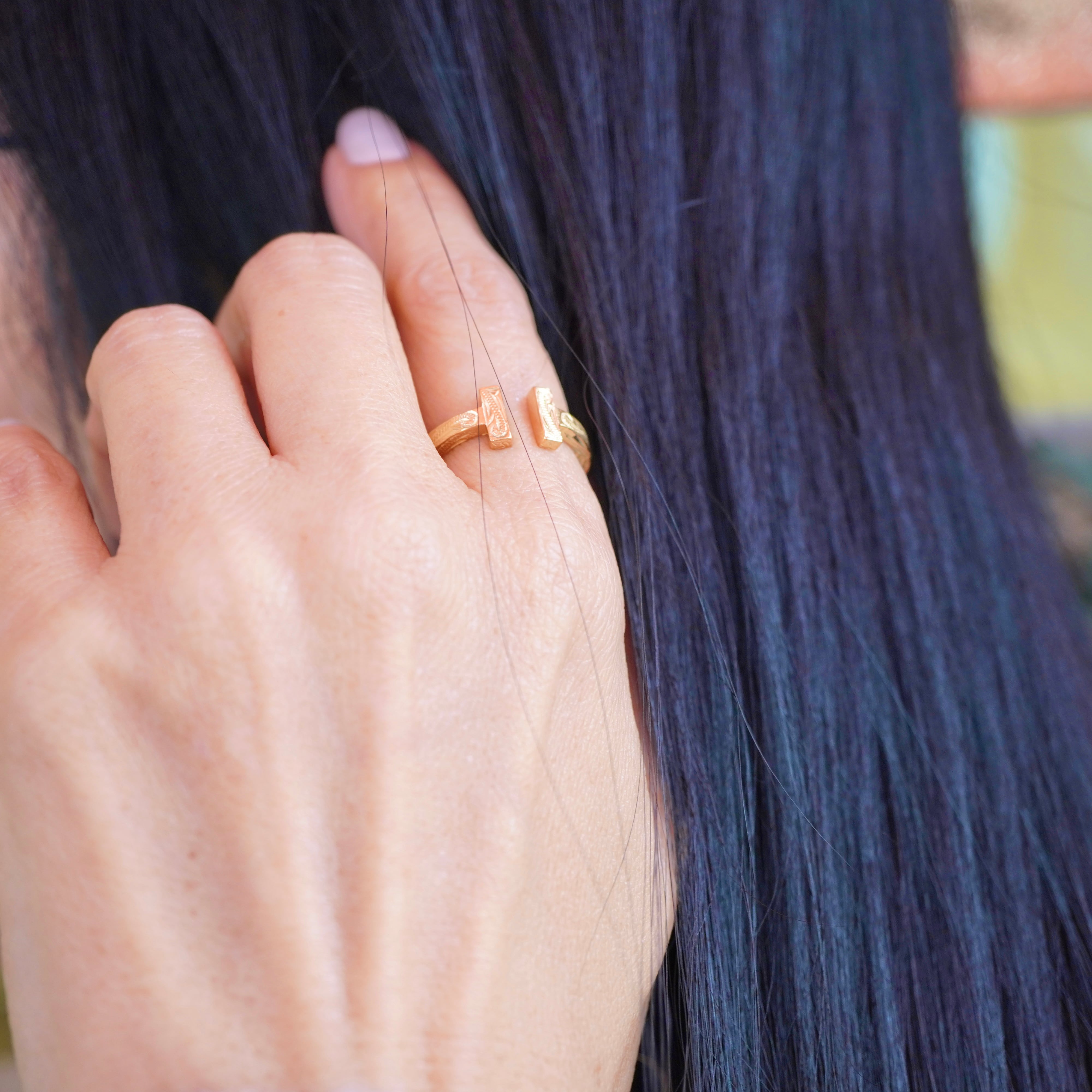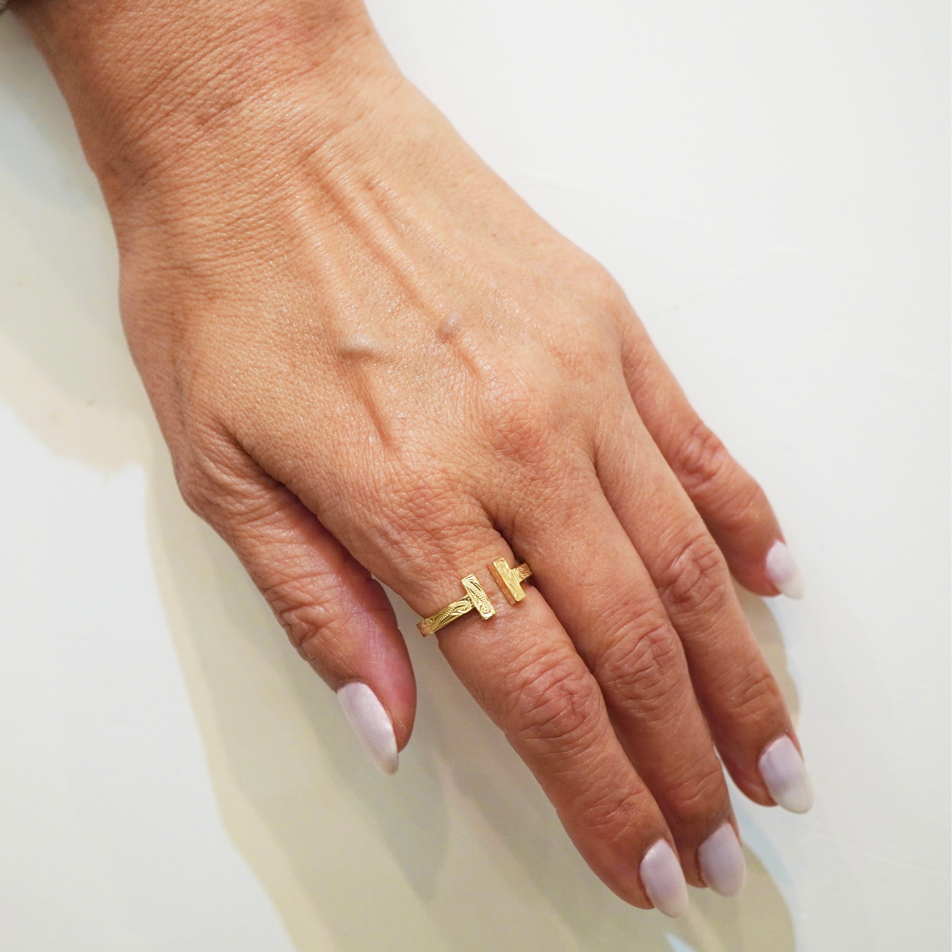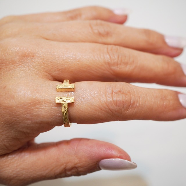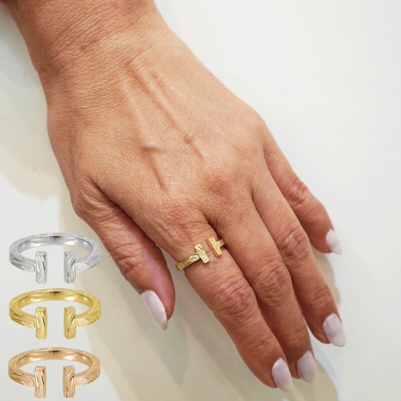 ハワイアンジュエリー サージカルステンレス リング スクロール柄 Tリング ステンレス メンズ レディース メッキ 316L lei-GRSS945