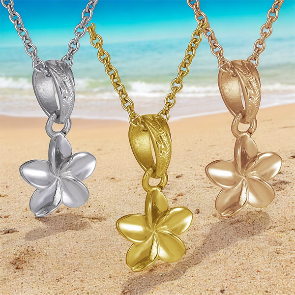 《New》《選べる3色》ハワイアンジュエリー プルメリア ネックレス ペンダント 金属アレルギー アレルギー対応 ステンレス サージカルステンレス 316L レディース スクロール 大人 シンプル プレゼント ギフト ラッピング無料 送料無料 人気 流行 lei-gpss1359