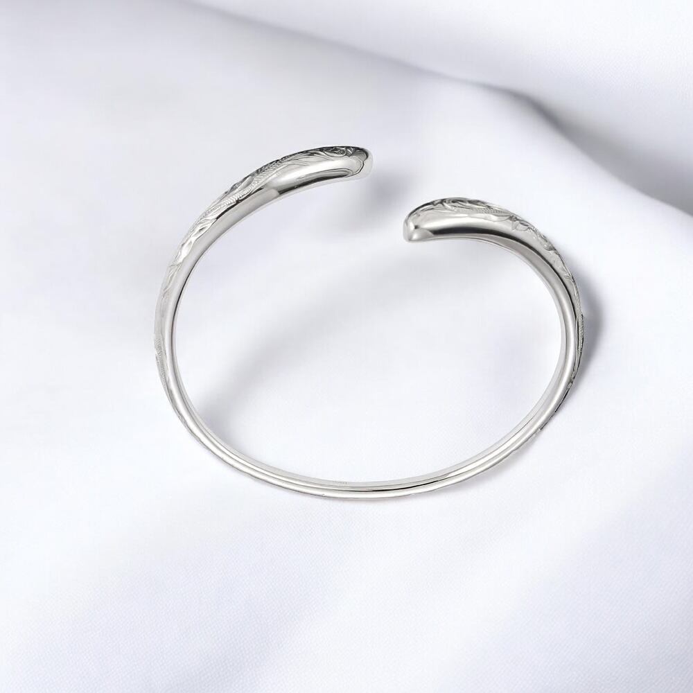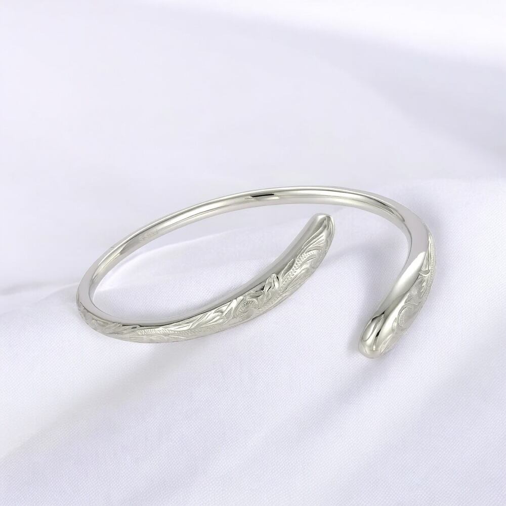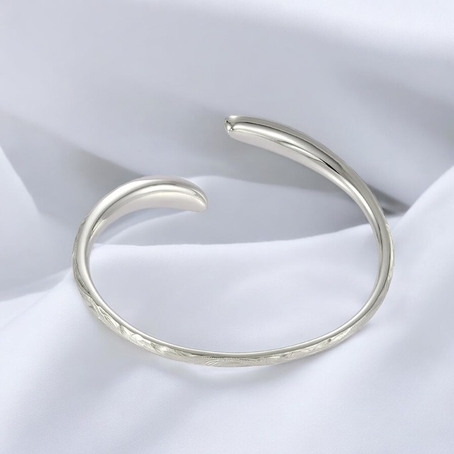 このバングルはご自分で広げてサイズ調整が出来ますがあまり何度も広げますとひび割れしたり折れる可能性があります。その場合は修理が出来ない事をご了承ください。