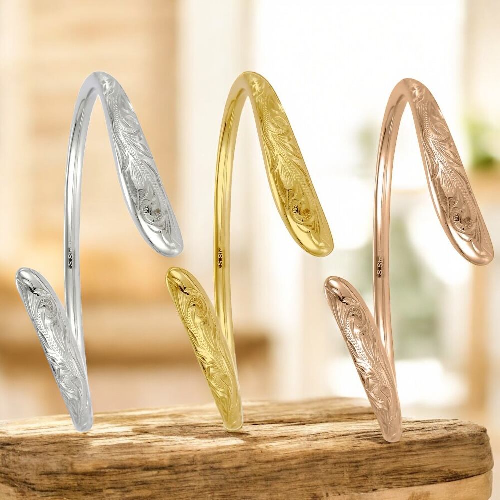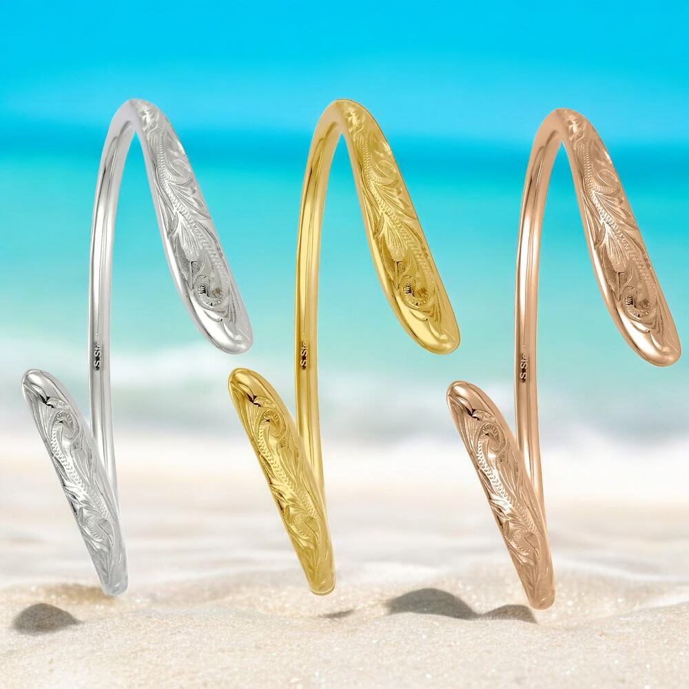 《選べる選べる3色》ハワイアンジュエリー サージカルステンレス オープンドロップバングル スクロール レディース 女性向け 送料無料 ステンレス プレゼント ギフト 誕生日 彼女 lei-gbsg187