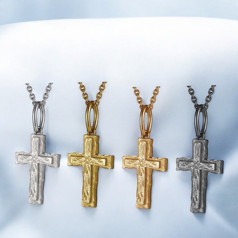 《New》《選べる4色》クロス 十字架 ネックレス ペンダント 金属アレルギー アレルギー対応 ステンレス サージカルステンレス 316L ハワイアンジュエリー レディース スクロール 大人 シンプル プレゼント ギフト ラッピング無料 送料無料 人気 流行 lei-GPSS1104