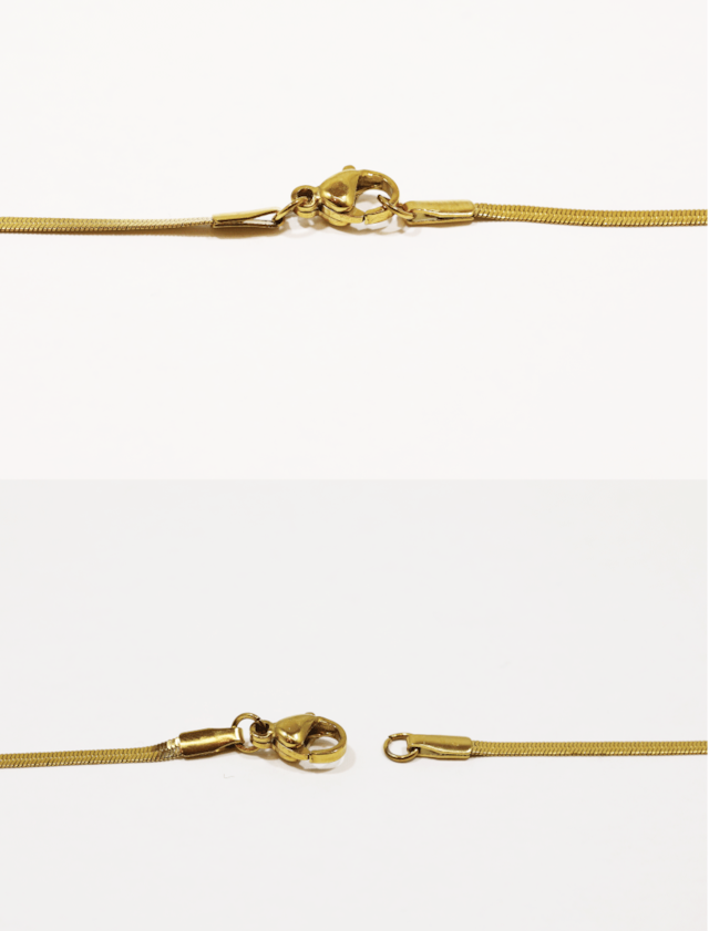 金属アレルギーに強いステンレスで出来ておりお肌が敏感な方でも安心してお着け出来るチェーンです。