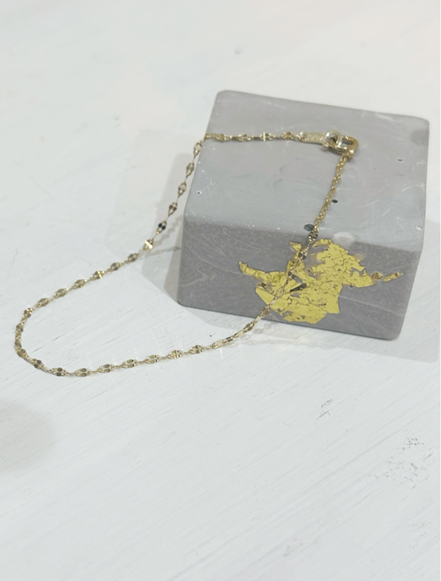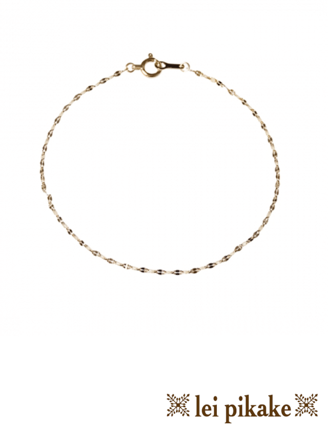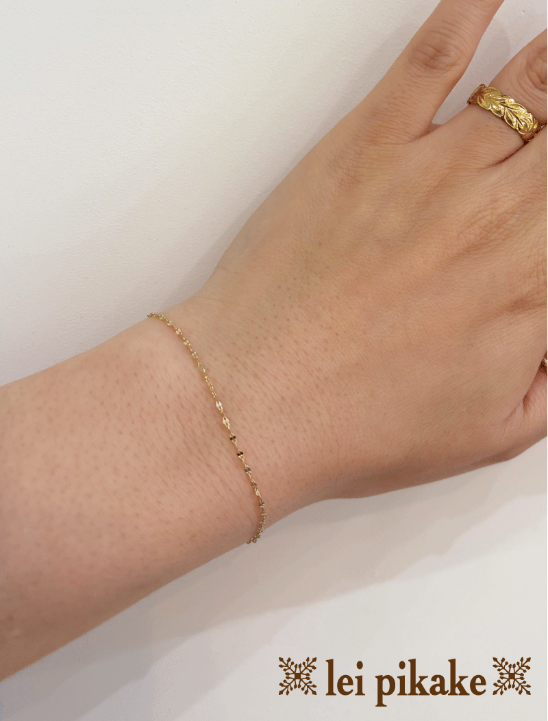 優雅で洗練された印象を与える「変形つぶし小判ブレスレット」は、10金(K10YG)で作られており、上品な細めのゴールドブレスレットです。どんなスタイルにもフィットし、手首に柔らかく馴染むデザインで、日常使いはもちろん、特別な日にもぴったりのアイテムとなっています。さらに、0.23mmの繊細な作りが、手元を一層美しく際立たせます。