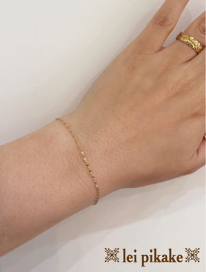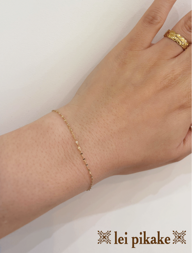 変形つぶし小判ブレスレット 16cm 女性向けサイズ K10YG 0.23mm 10金 10K ハワイアンジュエリー Maxi 5209-000-3