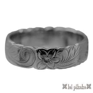 スクロール カットアウトリング ステンレス ブラックカラー ハワイアンジュエリー サージカルステンレス リング メンズ レディース レイピカケ 幸せ 幸福 送料無料 ハワイアンジュエリー サージカルステンレス リング ステンレス メンズ レディース キュービックジルコニア プルメリア JP7 〜 JP21 医療用 プレゼント ギフト 誕生日 友達 彼氏 彼女 lei-grss515-black
