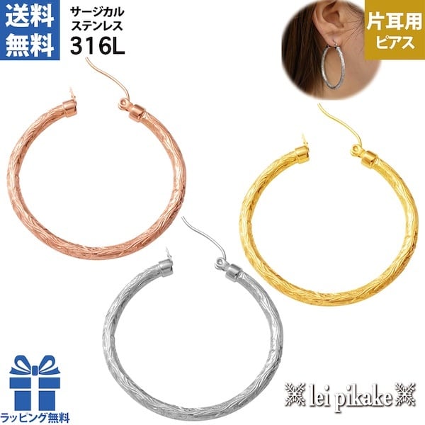 片耳 大きめスクロール フープピアス サージカルステンレス ハワイアンジュエリー ピアス サージカルステンレス ピンク イエロー スティール スクロール フープ レディース メンズ ステンレス プレゼント ギフト 誕生あす楽 大きいピアス かわいい 片耳 メール便送料無料 lei-gess180-single-pierce lei-gess180-single-pierce