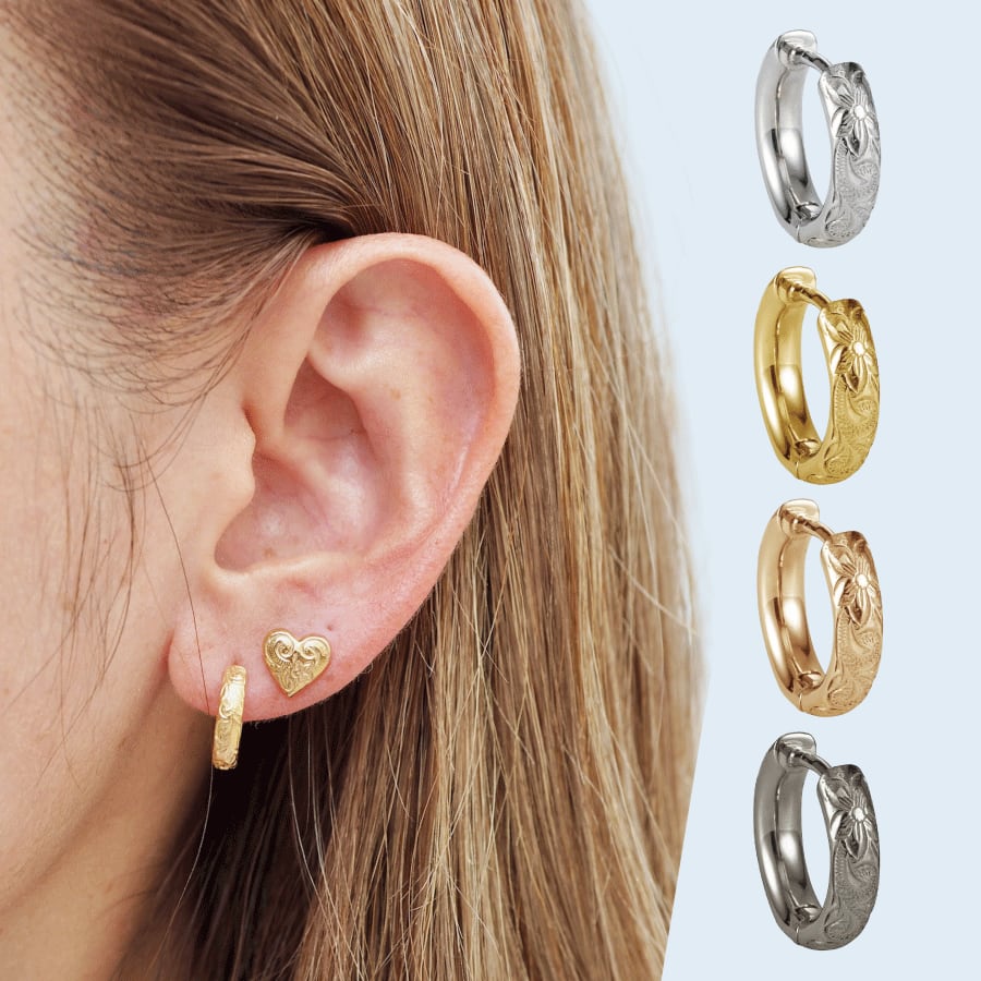 《選べる4色》《片耳販売》 小さめ フープピアス サージカルステンレス ハワイアンジュエリー ピアス 片耳 サージカルステンレス316L ブラック ピンク スティール イエロー コーティング スクロール フープ プルメリア レディース メンズ 医療用ステンレス プレゼント ギフト 誕生日 友達 彼氏 彼女 lei-gess125-single-pierce lei-gess125-single-pierce