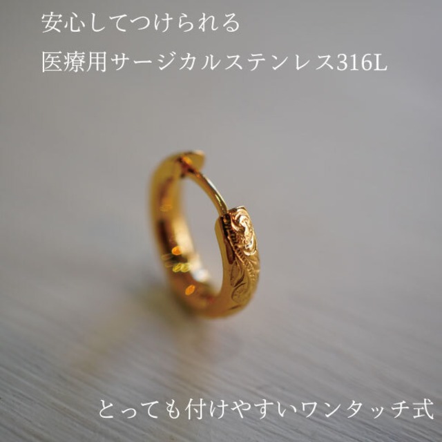 【期間限定特別価格】片耳 小さめ フープピアス サージカルステンレス ハワイアンジュエリー ピアス 片耳 サージカルステンレス316L ブラック ピンク スティール イエロー コーティング スクロール フープ プルメリア レディース メンズ 医療用ステンレス プレゼント ギフト 誕生日 友達 彼氏 彼女 lei-gess125-single-pierce lei-gess125-single-pierce