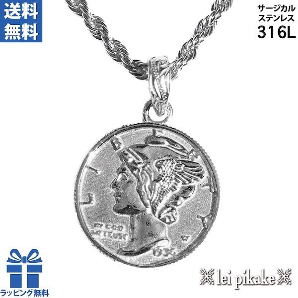 コインペンダント サージカルステンレス シルバーカラー ネックレス ハワイアンジュエリー 金属アレルギー アレルギー対応 ステンレス 316 レディース メンズ スクロール プルメリア シンプル リバーシブル プレゼント ギフト ラッピング無料 送料無料 人気 流行 lei-gpss1418-steel