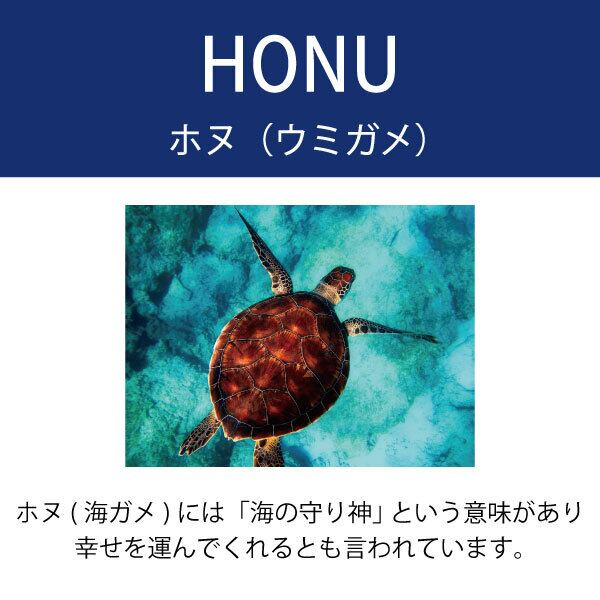 メインモチーフのホヌ(海亀)には「幸運を運ぶ」「海の守り神」「長寿」「平和」という意味もあります。