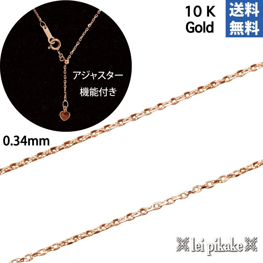 チェーン 女性向けサイズ アジャスター付 ハワイアンジュエリー あずきチェーン 10金(10K) ピンクゴールドチェーン アジャスター付 0.34mm-45cm 10Kピンクゴールド pg10k034mm