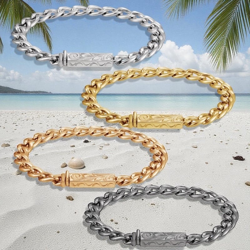 金属アレルギーに強いステンレス素材のハワイアンジュエリーブレスレット。