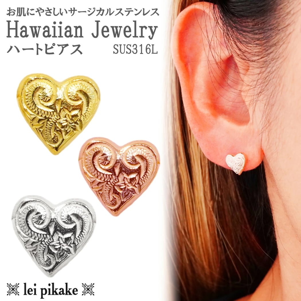 3色から選べるハート ピアス 片耳用 ハワイアンジュエリー サージカルステンレス 316L ステンレス 金属アレルギー レディース ハート 大人 上品 エレガント レイピカケ プレゼント ギフト ラッピング無料 送料無料 人気アレルギー対応 lei-gess521